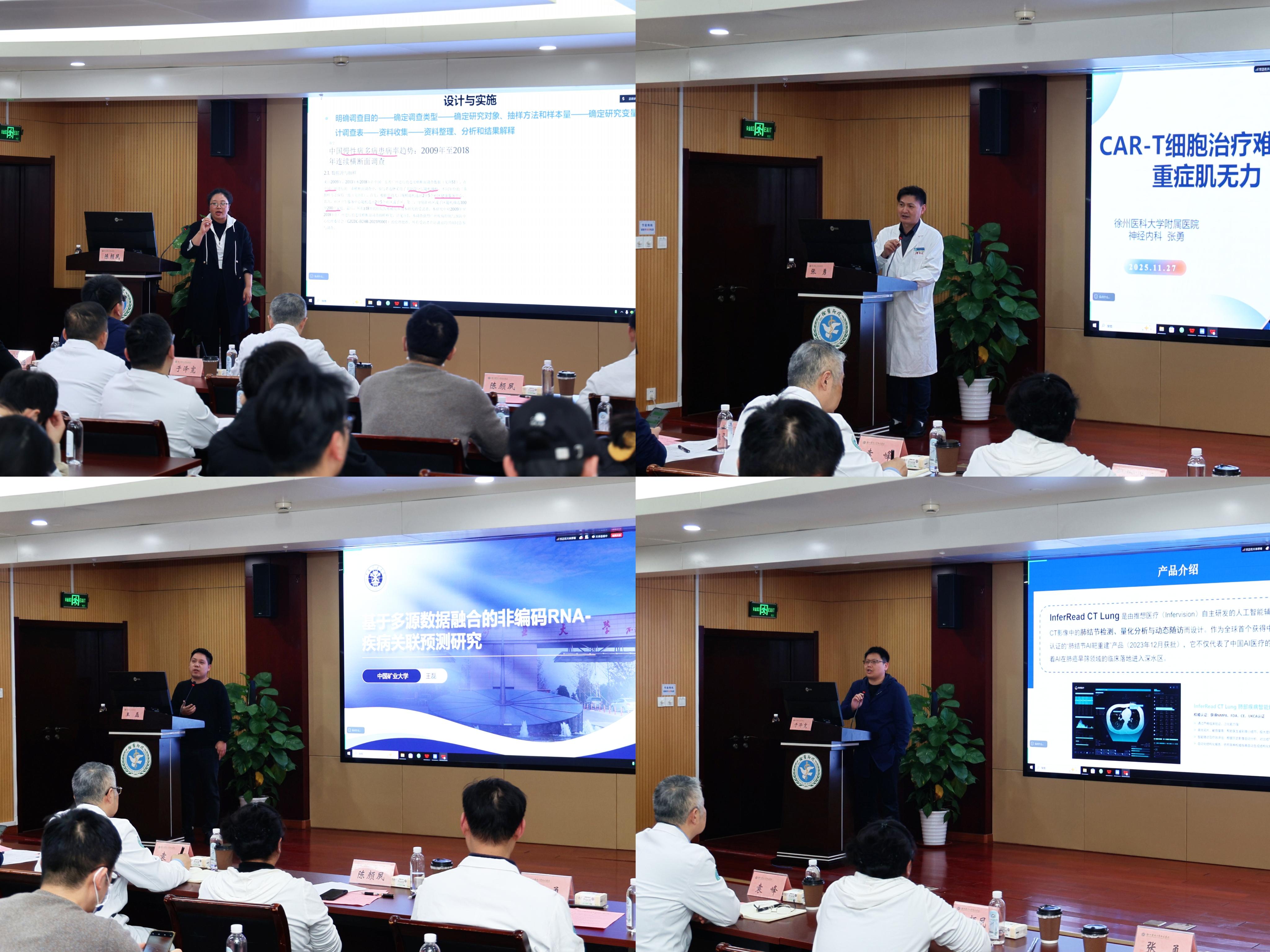 为提升我院临床科研水平与转化能力,推进研究项目高质量完成,11月27日下午,临床研究院面向33家教学(附属)医院科研人员,举办第6期(总第13期)临床研究系列培训。培训特邀徐州医科大学公共卫生学院副院长陈颜夙教授、徐州医科大学附属医院神经内科副主任张勇教授、中国矿业大学计算机技术与科学学院王磊教授、复旦大学生物医学工程与技术创新学院副研究员,上海脑重大疾病智能影像工程中心副主任于泽宽教授等专家进行授课。临床研究院院长袁峰致开幕辞,临床研究院副院长乔建林主持。